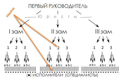 Начальники обычно заняты совещанием, а бестолковая, и именно от того срочная работа, начинает лезть в обход них, «на опережение». Если запускать вопрос по маршруту шеф → меньше шеф → еще меньше шеф →…→ исполнитель, он будет идти как минимум один день вниз, и не известно сколько дней обратно – наверх.