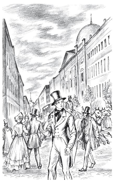 Александр сначала с провинциальным любопытством вглядывался в каждого встречного и каждого порядочно одетого человека, принимая их то за какого-нибудь министра или посланника, то за писателя: «Не он ли? – думал он, – не этот ли?» Но вскоре это надоело ему – министры, писатели, посланники встречались на каждом шагу.