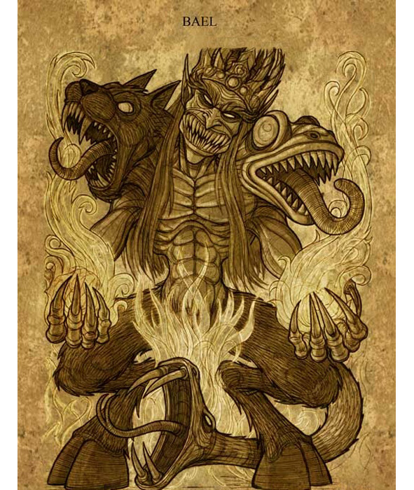 Следующий демон объявился на дальнем востоке, его зовут Баел, самый первый из демонов Соломона, один из самых омерзительных демонов, король демонов, он управляет 66 Легионами Адских духов. Он появляется в различных видах, в одном образе он появляется как кот, а в другом образе как жаба, а в другом как человек, но иногда во всех видах сразу, он может превратится в обычного человека после того как его вызовут лишь в том случаи, когда его символ будет одет на человеке. Он говорит хриплым голосом.