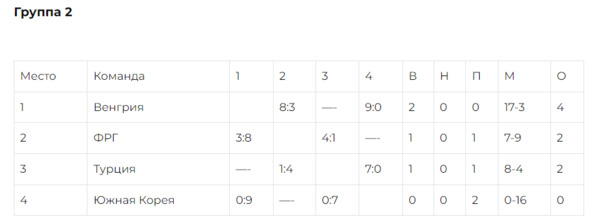 Здесь был сыгран дополнительный матч, так как сборные Турции и ФРГ с общем, счетом 17—3. Сборная ФРГ победили сборную Турции 4—1, и разгромили Южную Корею 7—0. Именно по этому пришлось играть дополнительный раунд, где сборная ФРГ одержала убедительную победу!