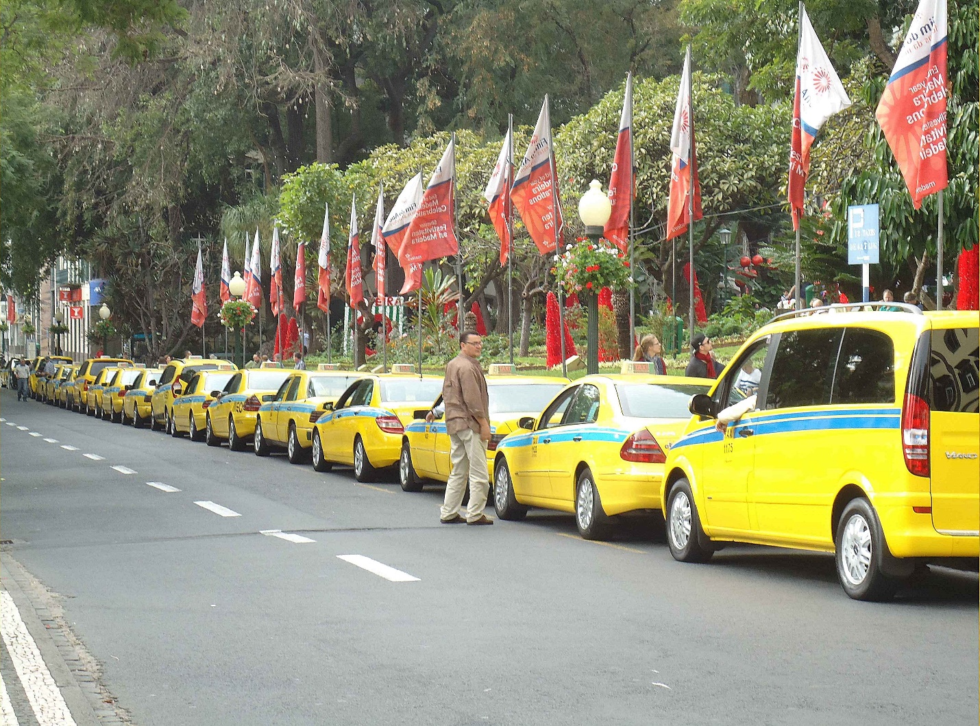 Покинув здание аэропорта, где встречаешь лишь очень нехарактерных для приветливых островитян служащих с каменными лицами (служба, что поделаешь, безопасность и так далее), путешественник видит длинную цепь жёлтых автомобилей с голубенькой полосочкой посередине. Чаще всего среди них встречаются мерседесы, и чаще всего – произведённые лет двадцать-двадцать пять назад (на португальских номерах есть указание на месяц и год ввода машины в эксплуатацию). Рядом стоят, курят, болтают их водители. Это как правило мужчины старше среднего возраста. Молодые среди них встречаются, впрочем, как и женщины (о чудо!), но и те, и другие больше в Фуншале, в маленьких городах таксисты зачастую откровенные старики лет под семьдесят. Кстати, автор «Иностранца на Мадейре» услугами такси, судя по всему, пользуется крайне редко. Его из аэропорта обычно подвозят знакомые. Как минимум, это следует из текста. Во всяком случае, Остальский, уделяя много места всевозможным чудесам мадейранской флоры от бугенвиллеи до оливковых деревьев, почти совсем не пишет о представителях этой распространённой на острове профессии. Разве что, извиняюсь за выражение, полную ерунду, ну может не совсем ерунду, но очень нетипичную ситуацию. Например, рассказывает «о таксистах, которые постепенно становятся друзьями семьи, если ты пользуешься их услугами на протяжении нескольких лет. Так вот: не дай бог предложить им чаевые – обижаются. Норовят время от времени вообще денег за проезд не взять».