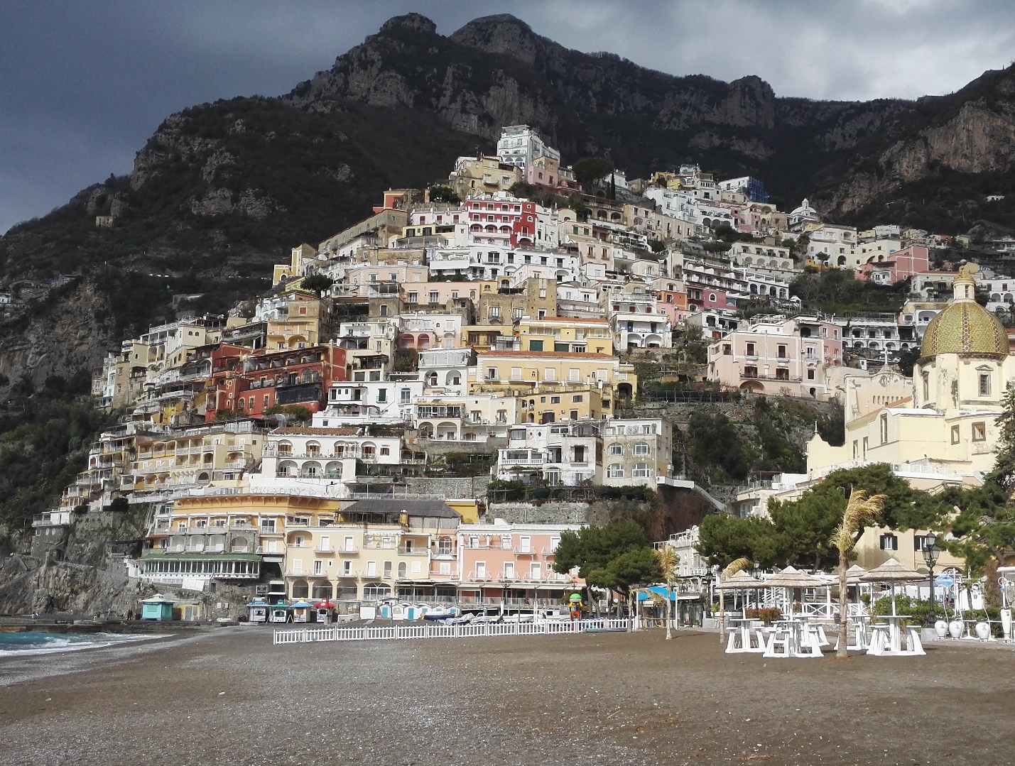 Но я опять ушёл в сторону. Вико-Экуенсе, Сорренто, Позитано, Амальфи – милые, чудесные городки. Когда-то врезанные в горные ущелья деревушки, они постепенно расползлись по отрогам близлежащих гор. Белые и жёлтенькие, бежевые и розоватые домики вкупе с двух- трёх- четырёхэтажными гостиницами тесно лепились на отведённой им природой и нечеловеческими усилиями людей участочках. Разноцветье творений рук человеческих, синее до лазоревого море, ярко-голубое небо и ослепляющее солнце – вот она наша Италия, та, о которой мечтаешь скучными, однообразно-серыми питерскими зимними днями и вечерами. Посреди каждого городка, на главной площади да ещё в паре мест церкви с очень своеобразными, собранных из разных кусочков, как рукоятки наборных ножиков, округлыми куполами. От главной базилики идут в несколько сторон городские перспективы и маленькие проулки, они постепенно наползают на апеннинские вершины.