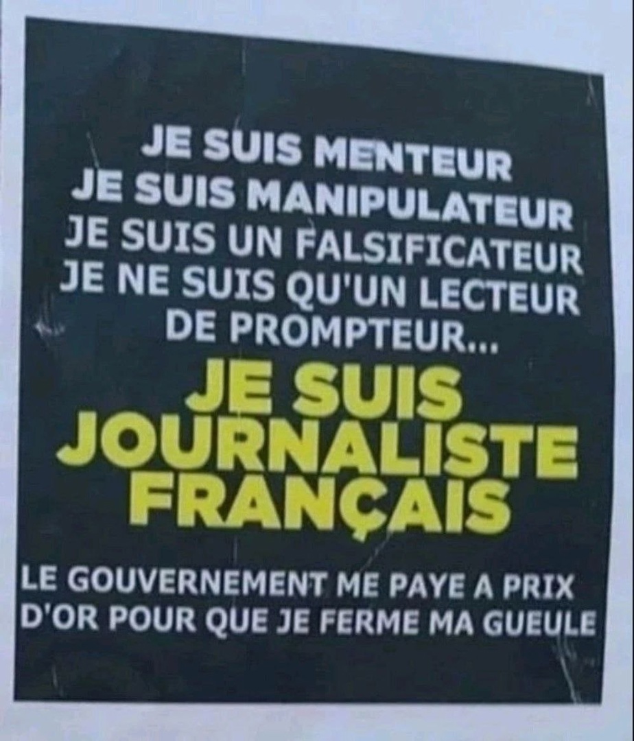 Перевожу: «Я лгун, я манипулятор, я фальсификатор, я всего лишь читаю телесуфлёр. Я ФРАНЦУЗСКИЙ ЖУРНАЛИСТ. Правительство мне щедро платит, чтобы я затыкался» (когда надо – И. К.).