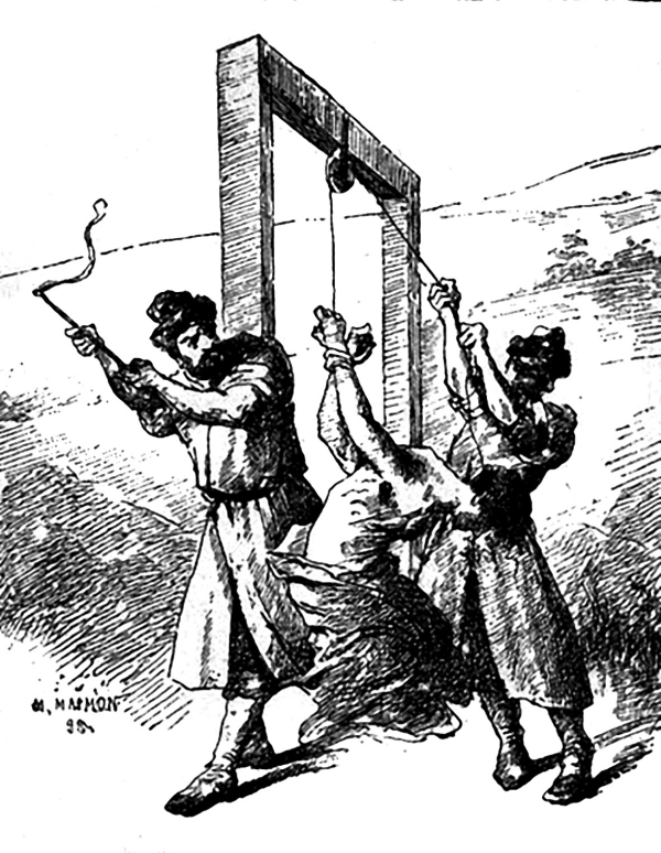 Дыба и кнут. Литография «Орудия пытки». Фрагмент. 1898 г.