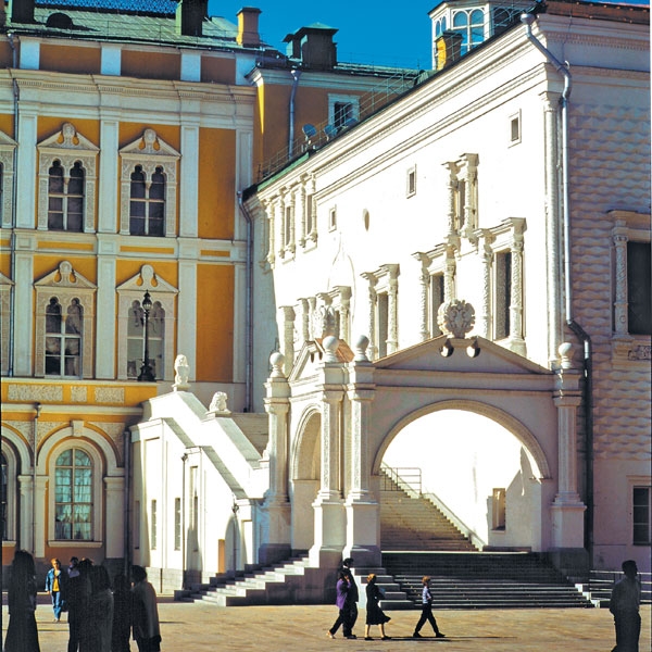 Грановитая палата находится между Успенским и Благовещенским соборами, примыкая западной своей стороной к Императорскому дворцу[88]. Построена она по повелению великого князя Ивана III. Начал ее строить в 1473 году Марк Фрязин, а окончил уже в 1490 году Петр Фрязин. Название Грановитой она получила потому, что наружность ее покрыта выделяющимися гранями (четверогранниками).