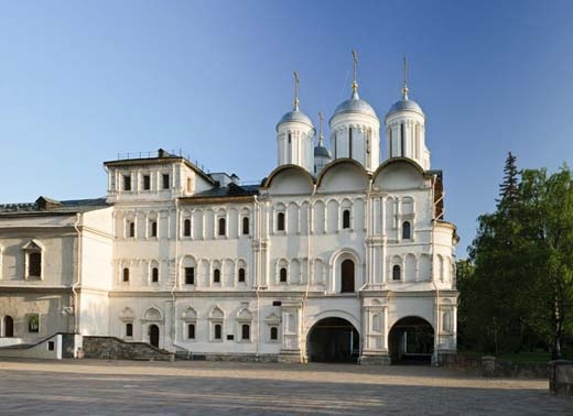 Патриарший дом[94] – создание патриарха Никона. Он воздвиг его в 1655 году, в то время, когда царь Алексей Михайлович находился в походе против поляков и овладел Вильно. Когда царь возвратился из похода, то в нем Никон уже встречал царя-победителя, и царь принимал его благословение. Дом построен в три яруса с вышкой, и в нем с 1639 года помешалась Греко-латино-славянская школа (в части дома, существовавшей ранее). Никон же устроил в этом доме и Крестовую палату, в которой со времен Екатерины II находится мироварная. В этой палате патриархи встречали всегда царя, сюда приходил царь в день своего тезоименитства с именинным пирогом, и в ней же строитель ее Никон предстал на суд вселенских патриархов. Рядом с палатой находится церковь Двенадцати Апостолов, описание которой сделано ранее, и Патриаршая, или Синодальная, библиотека – богатейшее книгохранилище, составлявшееся в течение столетий царями, патриархами и митрополитами. До великого князя Ивана III Васильевича собрание книг и рукописей было не особенно значительно и составляло собственность митрополитов, следовательно – частную, а не государственную. Со времени же Ивана III сами цари начали пополнять библиотеку драгоценными вкладами книг и рукописей.