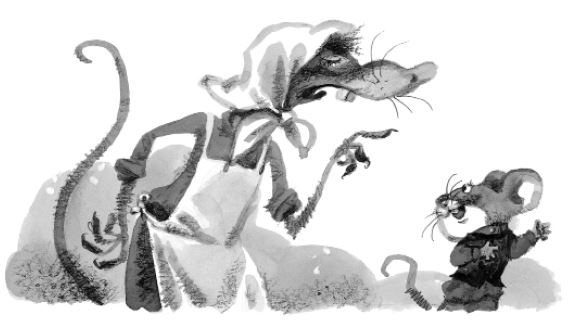 «Соседка, слышала ль ты добрую молву? —        Вбежавши, Крысе Мышь сказала, —Ведь кошка, говорят, попалась в когти льву?Вот отдохнуть и нам пора настала!» —         «Не радуйся, мой свет, —        Ей Крыса говорит в ответ, —        И не надейся по-пустому!        Коль до когтей у них дойдёт,        То, верно, льву не быть живому:        Сильнее кошки зверя нет!»