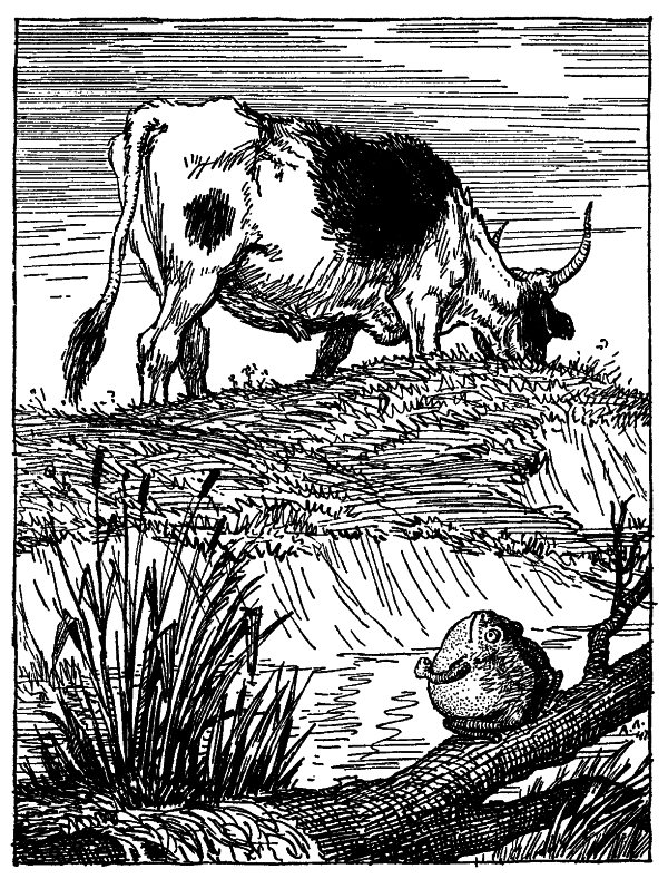 Лягушка, на лугу увидевши Вола,Затеяла сама в дородстве с ним сравняться:Она завистлива была.И ну топорщиться, пыхтеть и надуваться.«Смотри-ка, квакушка, чтó, буду ль я с него?» —Подруге говорит. «Нет, кумушка, далеко!»«Гляди же, как теперь раздуюсь я широко.Ну, каково?Пополнилась ли я?» – «Почти что ничего».«Ну, как теперь?» – «Все то ж». Пыхтела да пыхтелаИ кончила моя затейница на том,Что, не сравнявшися с Волом,С натуги лопнула и – околела.Пример такой на свете не один:И диво ли, когда жить хочет мещанин,Как именитый гражданин,А сошка мелкая – как знатный дворянин?