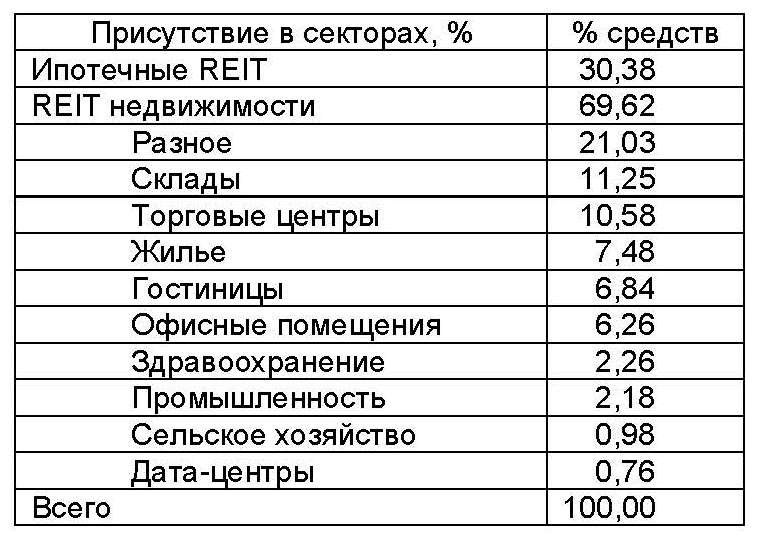 Как видно из таблицы выше, самая большая часть портфеля – 21,03% – классифицируется как «Разное». Далее следуют фонды складской недвижимости (11,25%), торговые центры (10,58%), жилье (7,48%) и гостиницы (6,84%). Эти первые пять позиций демонстрируют довольно хорошее распределение.