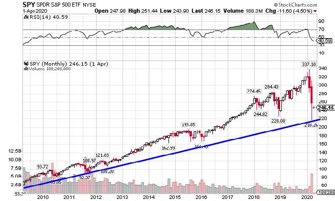 Вот долгосрочный график ETF SPDR S&P 500 (SPY):