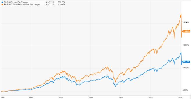 В одном из последующих разделов мы подробнее поговорим о дивидендах и планах реинвестирования дивидендов (DRIP). Сейчас я хочу лишь дать вам представление о том, как конкретные инвестиции могут увеличить доходность. Дивиденды – это часть прибыли компании, которую совет директоров решает выплатить своим акционерам. Дивиденды выплачивают многие компании, но для простоты я покажу вам, как это работает, на примере S&P 500.