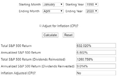 На первый взгляд это может вас не впечатлить, но вы увидите, что это работает. Для наглядности выберем сумму инвестиции и учтем, что в акции за этот период происходили деления.