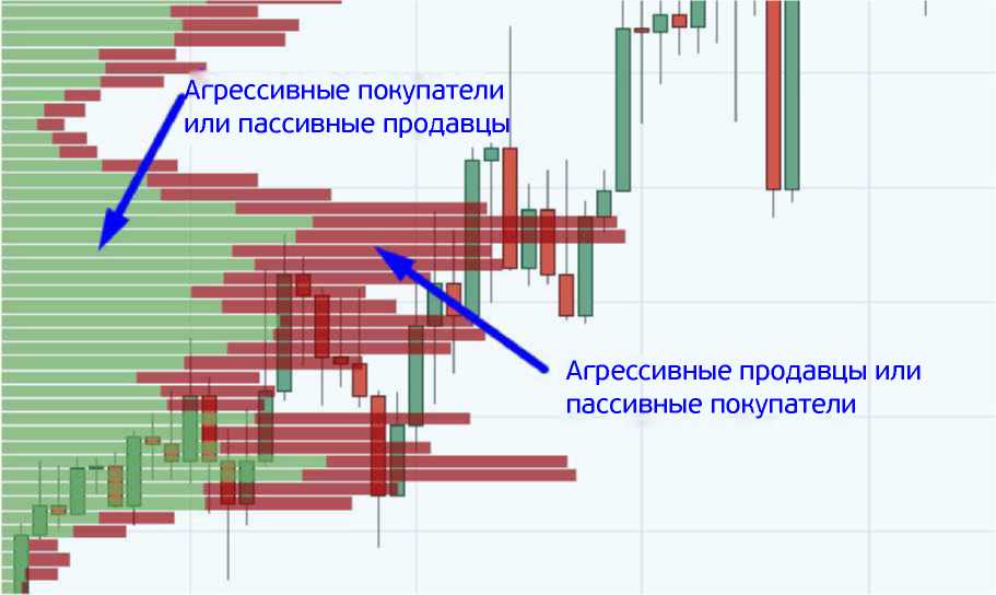 Зеленый цвет (положительный) – это когда больший объем исполняется по Аск (во всем диапазоне).