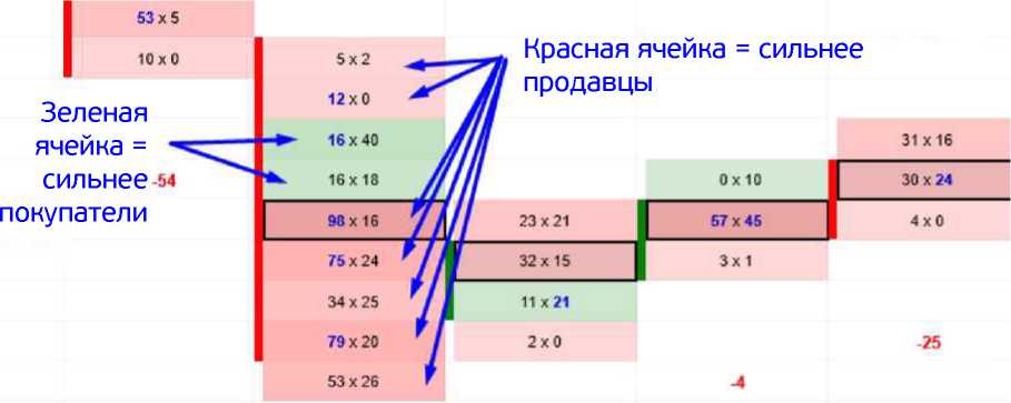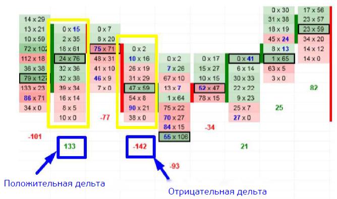 КРАСНЫЙ (отрицательный) – когда больший объем исполняется по Бид (во всем объеме).
