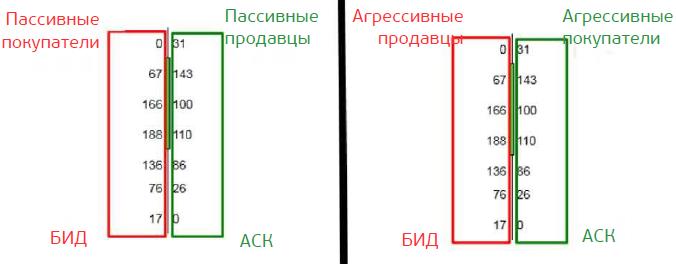 • АСК (предложение): Показывает агрессивных покупателей и пассивных продавцов.