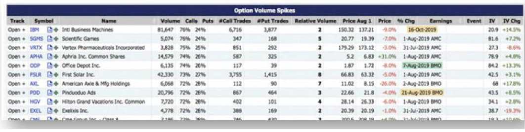 Следование необычной активности опционов – это стратегия, используемая для поиска идей для торговли опционами. В частности, инвесторы используют сканер, который отслеживает объемы опционов и точно определяет те акции, интерес к которым выше среднего.