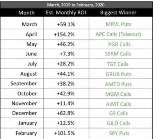 Цель игры состоит в том, чтобы ПОКУПАТЬ и поддерживать непрерывный портфель сделок с опционами, найденных с помощью необычной активности опционов, используя уникальный процесс вместе с планом, который извлекает прибыль из этого процесса.