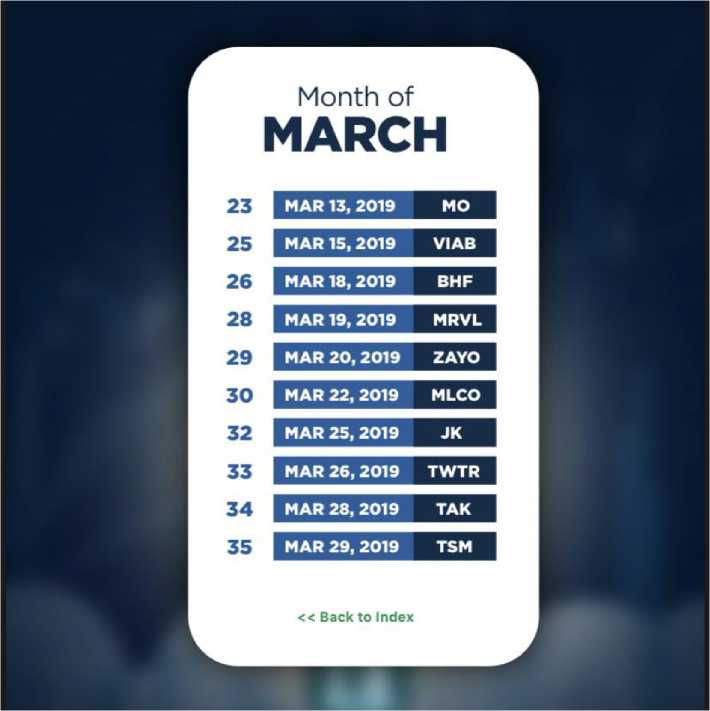 Скотт Готлиб был очень строг с табачными компаниями, называя электронные сигареты «эпидемией». Его заявление об отставке, сделанное во вторник, 6 марта, заставило табачные компании вздрогнуть. В тот день MO поднялся на 4% и продолжал расти до конца недели.