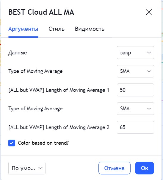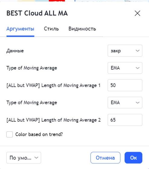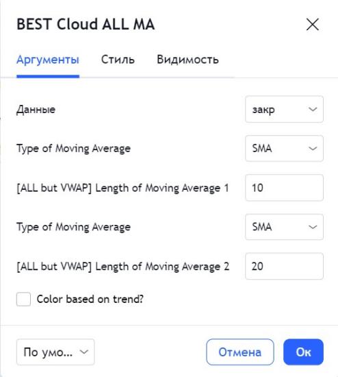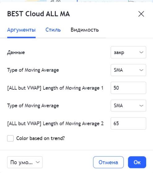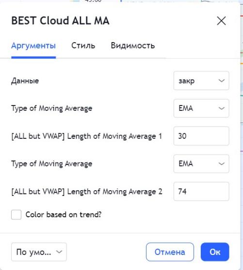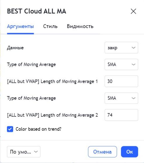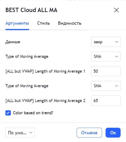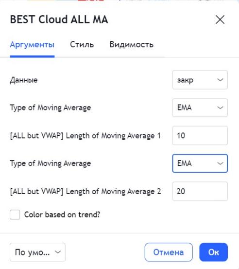 – Я использую индикатор Best Cloud MА, который имеет следующие настройки: