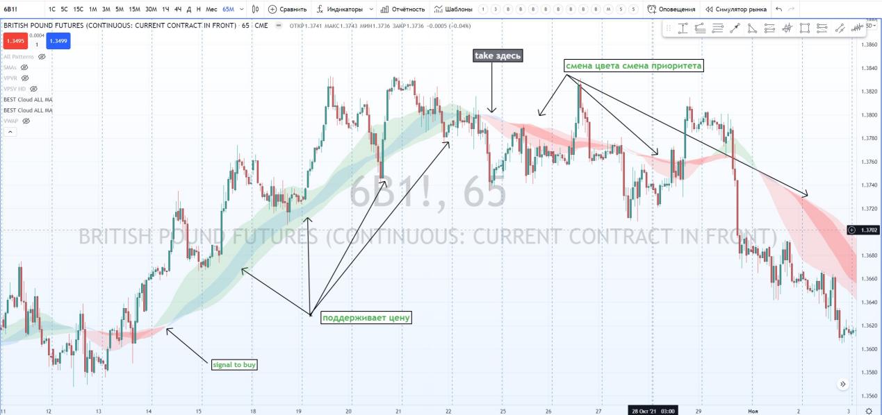 Конечно, помимо облаков, я использую и обычные SMA, которые отлично показывают тренд и будут подсказывать Вам области для поиска точек входа.