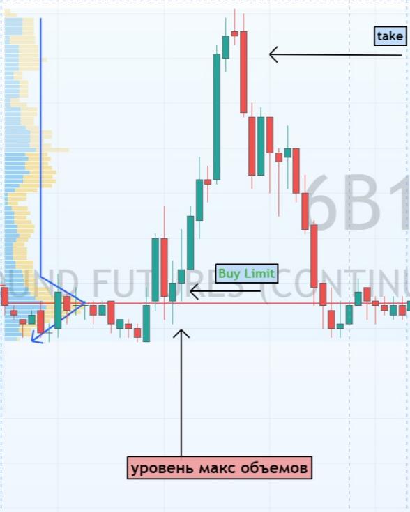 Видите – уровень макс. Объемов в виде буквы Р дал нам отличную точку для входа.