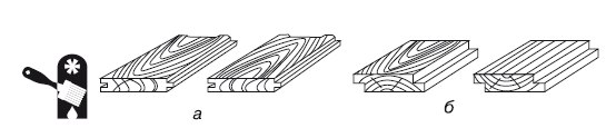 Рис. 1.12. Доска: а – шпунтованная; б – фальцованная