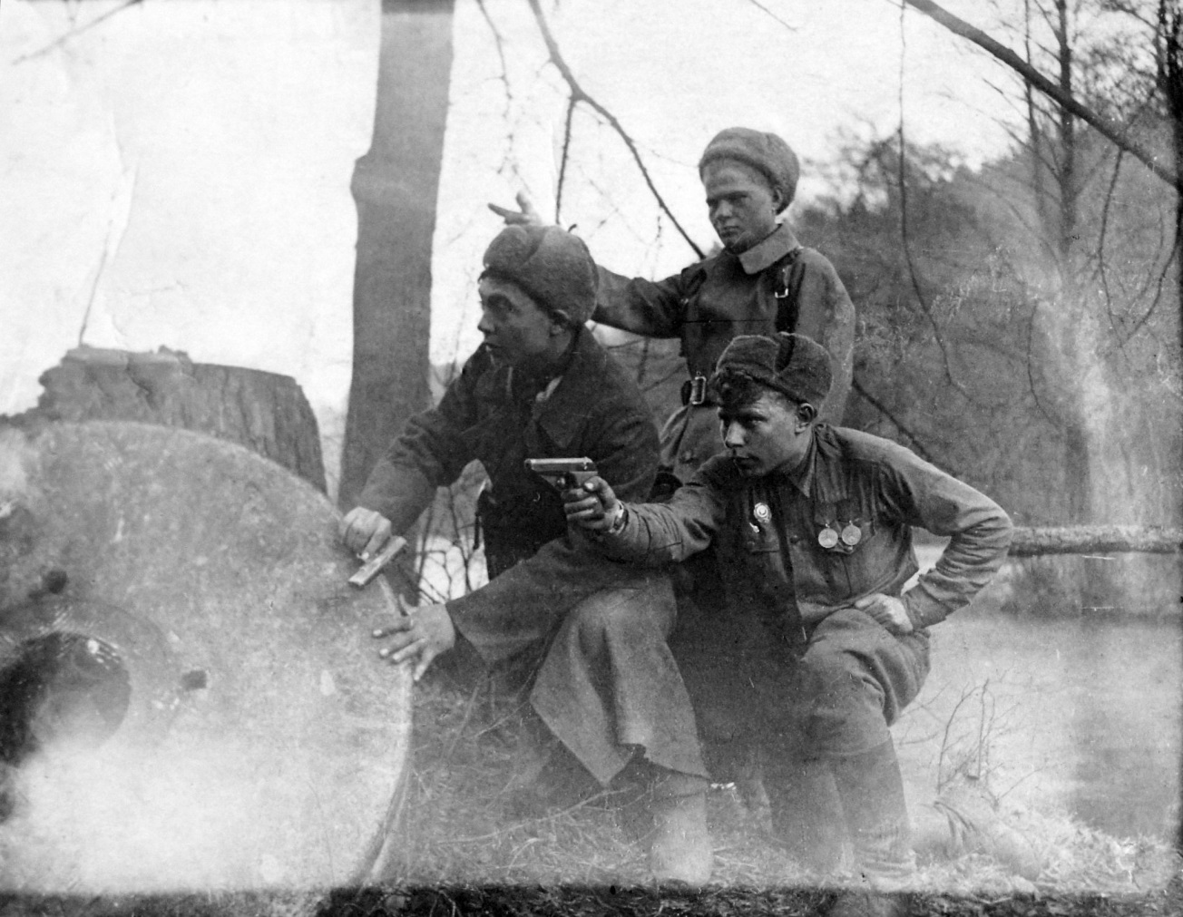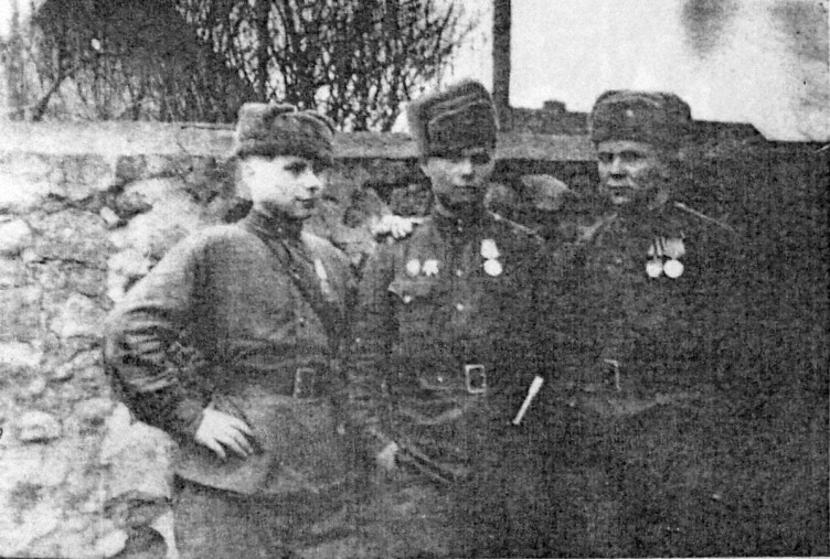 На Одере, апрель 1945 год. ПНШ-2 капитан Иван Тараненко, переводчик старшина Иван Бывших, младший сержант Иван Горшков