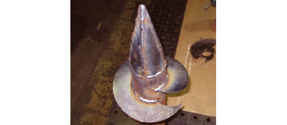Полученное в результате острие в виде конуса, очень удобно в дальнейшем для приварки к нему лопастей.
