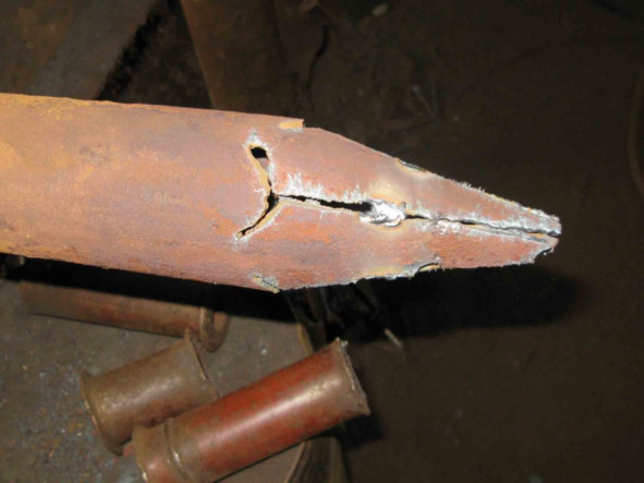 – Конец, обрезанный поперек трубы, к которому приваривается заостренный литой наконечник