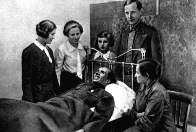 В день вручения Николаю Островскому ордена Ленина 24 ноября 1935 года. Справа Ольга Осиповна Островская – мама писателя. Стоят слева направо: Раиса Порфирьевна (жена); Екатерина Алексеевна – сестра; Катя – племянница; Дмитрий Алексеевич – брат.