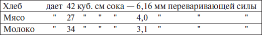Эта способность все растет и растет с продолжением кормления мясом; способность же переваривать крахмал относится совершенно обратно, т. е. постепенно слабеет. Вот опыт из работы доктора Васильева.