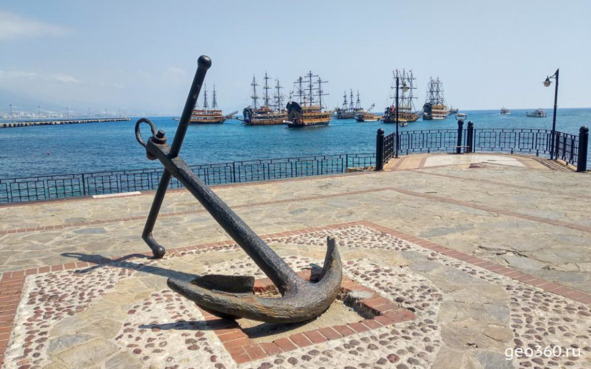 К башне вдоль моря ведет прямая улица Рыхтым, которая заканчивается небольшой полукруглой площадью. В центре площадки установлен якорь, а по краям – удобные скамейки. Здесь, под Красной башней, особенно приятно сидеть вечером, когда с моря веет прохладный ветерок, а на стенах старой крепости Алании включают подсветку.