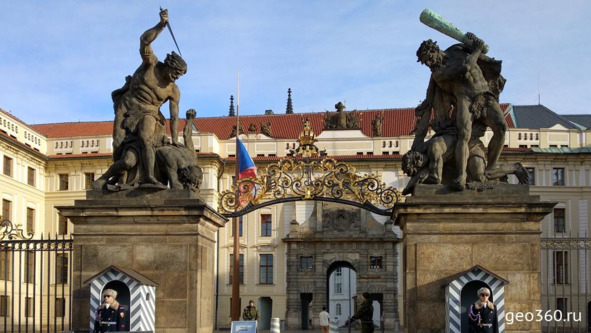 Перед входом в Пражский Град можно наблюдать смену почетного караула. Смена часовых проходит ежедневно каждый час с 9:00 до 18:00. Ровно в полдень у Ворот Титанов проводится торжественный церемониал смены караула с военным оркестром. Всю смену часовых можно наблюдать достаточно близко. А когда часовые просто несут службу, к ним можно подходить и фотографироваться – это не возбраняется.