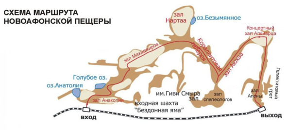 Одно из самых интересных мест в Абхазии – пещера в Новом Афоне. Она одна из самых больших в мире, открытых для посещения. Огромные размеры гротов, сталактиты и сталагмиты, подземные озера, каменные водопады в пещере поражают даже видавших виды туристов. Добавляет впечатление звучащая в полумраке подземных залов протяжная национальная музыка абхазов.