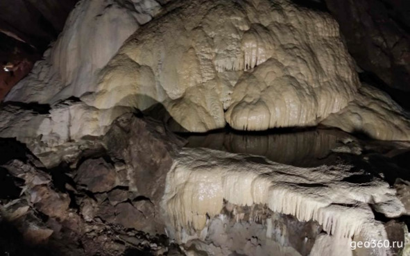 В этом зале находятся два подземных озера – Анатолия и Голубое озеро, и отверстие «Бездонной ямы», в которую спустились первооткрыватели пещеры.
