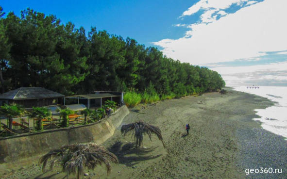 В советское время здесь даже действовал неофициальный нудистский пляж, что по тем временам было немыслимо. А начало положили ему туристы из ГДР, ведь в Пицунде в 1970-е годы выстроили несколько высотных корпусов санатория Интуриста. Эти гостиницы, расположенные на самом берегу моря среди сосен, до сих пор принимают гостей.
