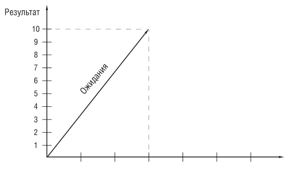 Возьмем за Х – время или возраст, например, с юности до 30 лет, а за Y – результат (достижения человека, уровень жизни, реализованные цели). На точке отсчета у нас человек, наполненный энтузиазмом и уверенностью. Он считает, что все впереди.