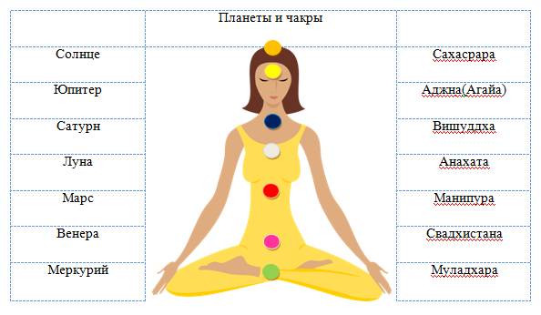 Список чакр из учебника «Remedies in Vedic Astrology» Sandjay Rath