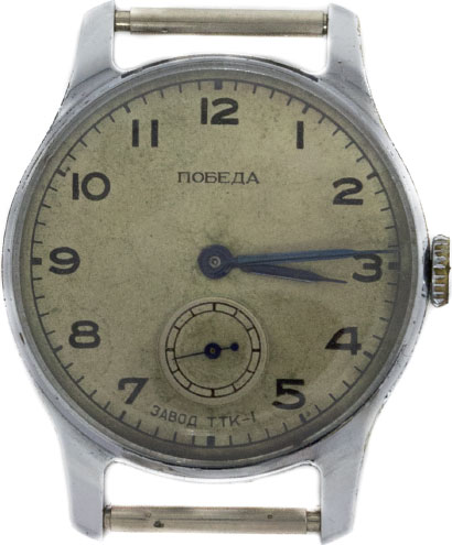 Часы «Победа», изготовленные на Заводе точных технических камней (ТТК-1) в 1950-х годах. На циферблате внизу соответствующая маркировка