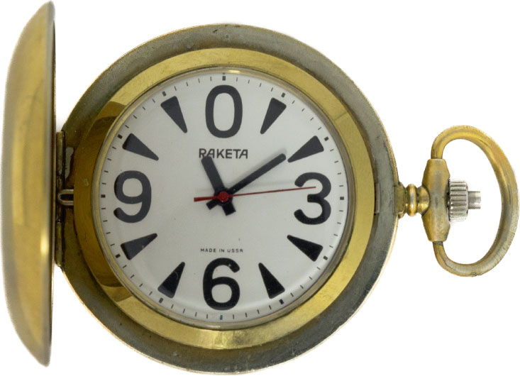 Карманные часы «Ракета», известные также под названием «Ракета-зеро» (вместо «12» у них «0»). Конец 1980-х – нач. 1990-х годов