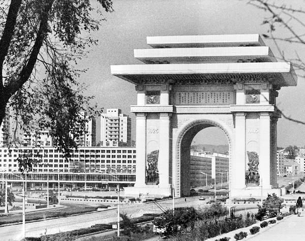 Считается, что это самая высокая в мире триумфальная арка, ее массивная П‑образная глыба поднимается на высоту 60 метров над широким шоссе, проходящим у подножия Моранбона в сторону международного аэропорта Сунан. Когда я только приехал на работу в Пхеньян, у меня в распоряжении был старенький внедорожник из тех, которых называли «газиками», с брезентовым верхом. Точно такие же были у северокорейских военных тех лет. Под аркой Кэсонмун можно было проехать только высоким лицам КНДР и иностранцам в этой стране. Остальные должны были объехать арку по круговой дороге. Когда я на полной скорости проезжал под аркой по прямой, на дорогу выбегала регулировщица со светящимся жезлом и изо всех сил дула в свисток с гневным выражением лица, пытаясь меня остановить. Видимо, она думала, что едет машина какого-то провинциального водителя, не знакомого с правилами Пхеньяна. Но при моем приближении регулировщица уже могла обратить внимание на номер машины для иностранцев и, отдав честь, провожала меня взглядом с улыбкой, но с застывшим удивлением в глазах.