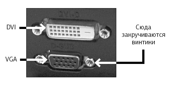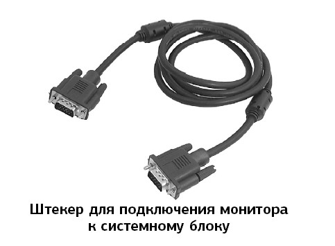 Посмотрите на форму штекера от монитора и найдите на системном блоке подходящий для него разъем (напоминаем, обычно штекер и разъем имеют одинаковый цвет и форму). На нашем рисунке показано, как он выглядит.