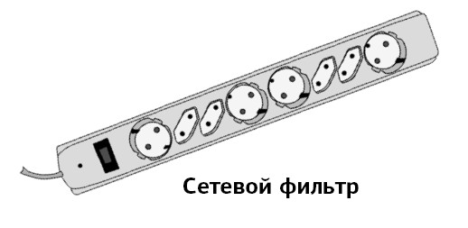Сетевой фильтр похож на обычный удлинитель. В сетевой фильтр вставляется электрическая вилка и от системного блока, и от монитора.