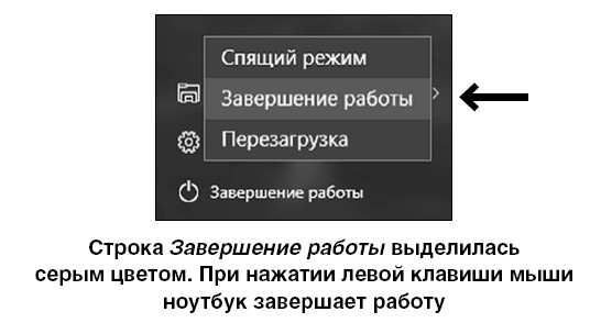 7. Вновь нажмите левую клавишу мыши. Ноутбук сам завершит работу.