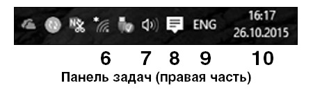 9 Надпись РУС (или ENG) показывает, какой язык включен в данный момент (это важно знать, если вы собираетесь что-то напечатать, об этом мы уже говорили чуть выше).