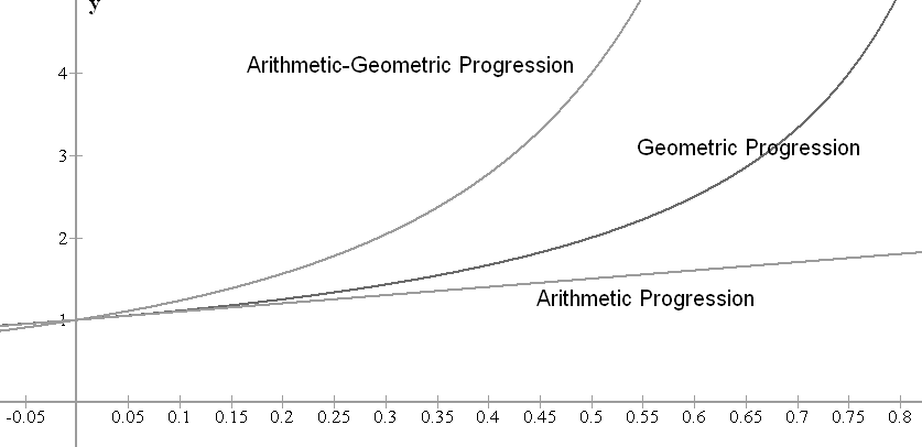 Арифметической прогрессией можно выразить регулярные пополнения на одинаковую сумму. Геометрическая прогрессия показывает доходность изначально вложенных средств с учетом реинвестирования. Арифметико-геометрическая прогрессия сочетает в себе признаки двух предыдущих. Так, регулярное выделение части дохода на инвестиции с последующим реинвестированием полученного от инвестиций дохода увеличивает капитал в арифметико-геометрической прогрессии.