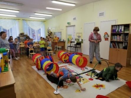 Атрибуты: туннели 2 шт., дуги 2 шт., телефонные аппараты 2 шт., электрический чайник, оголенный провод, спички, костюм Карлсона.