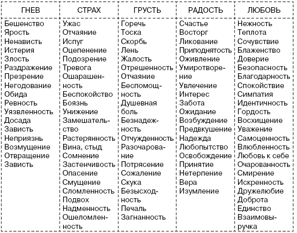 Таблица эмоций