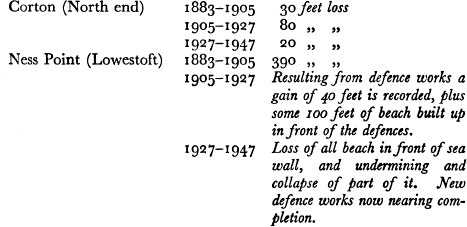 It is impossible and also unnecessary to comment on all places where erosion is serious, but a few examples may be given. The figures below for the neighbourhood of Lowestoft4 are revealing: