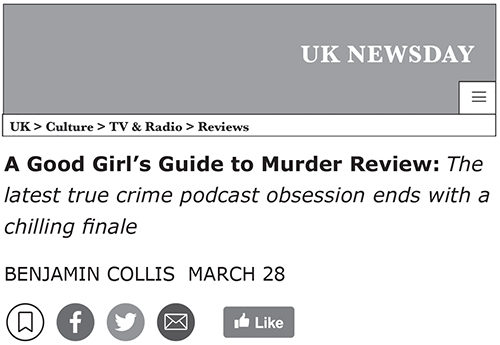 Of course, many of us knew how this mystery ended, from when it exploded on to the news cycles last November, but the whodunnit wasn’t the whole story here. The real story of A Good Girl’s Guide to Murder has been the journey, from a 17-year-old sleuth’s hunch about a closed case – the murder of teenager Andie Bell, allegedly by her boyfriend Sal Singh – to the spiralling web of dark secrets she uncovers in her small town. The ever-shifting suspects, the lies and the twists.